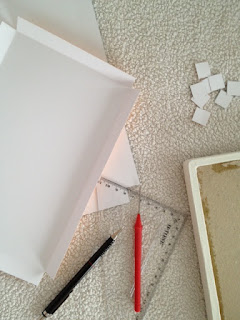 A hosszabb oldal közepére beragasztottam mindkét darabra egy-egy szalagot, amivel majd össze lehet kötni a dobozt.