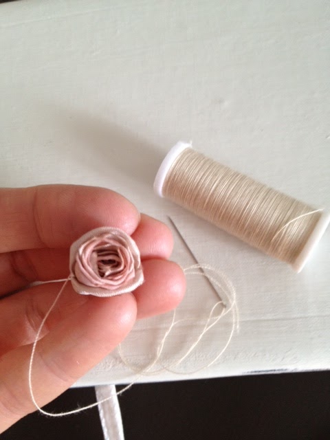 A legkisebb szirmokkal kezdve rózsát tekertem-varrtam belőlük.