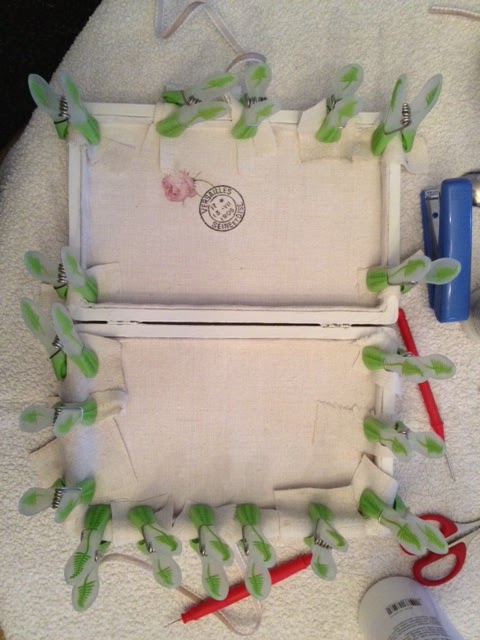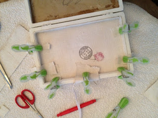 Azért, hogy biztosan minden a saját helyére ragadjon, és később se engedje el a ragasztás, az egészet ruhacsipeszekkel rögzítettem a száradás idejére.