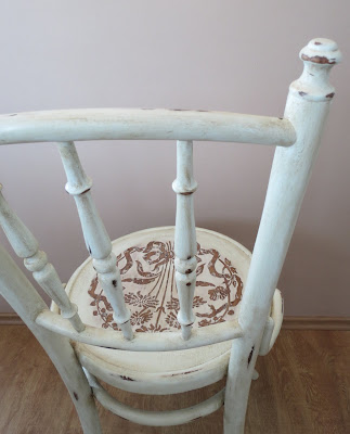 Első körben darabjaira szedtem, mivel kissé nyiszogott és nem volt stabil sem.Tisztítás, csiszolás és ragasztás után már betölthette a neki szánt szerepet. Csakhogy, én nem akartam hogy maradjon a régi barna színe, az ülés csodaszép mintája azonban nagy hatással volt a fantáziámra, annak feltétlenül maradnia kellett!