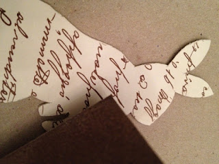 Elővettem egy vastag kartont és elárulom, hogy kezdetben csak ilyen natúr nyulam-bulam-okat szándékoztam vagdosni, azonban a karton keresése közben bukkantam rá erre a darabka maradék csomagolópapírra – amely Poline, a próbaba felújításából maradt meg – így menet közben változott a terv.