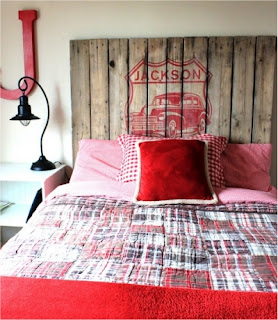 a srácok szobája jópofa, rusztikus ágyvéggel