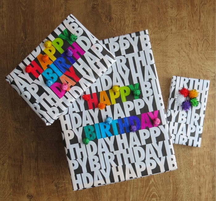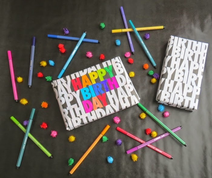 Egy 9 éves nagyfiúnak nem szerettem volna a – szerintem – személytelen, rajzfilmfigurás ajándéktasakokba rejteni a szülinapi meglepetéseket, és amikor rábukkantam erre a fekete-fehér csomagoló-papírra, nagyon megörültem.