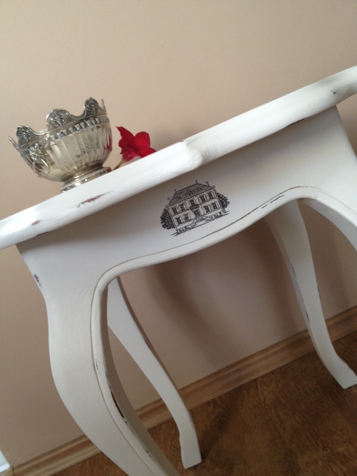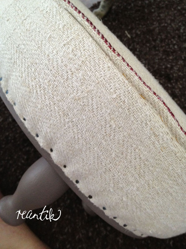 A cél érdekében mindent, és nagyon örültem, ahogyan a minta kezdett életre kelni. Amikor a hímzés résszel végeztem, a kiválasztott bézses-szürkés-fáradtrózsaszín színű keskeny bársonyszalagot felerősítettem a pöckök eltakarása miatt. Jó ötlet volt ezt használni, mert nem csakhogy eltakarta a nem túl szép részt, de egyúttal szép keretet is adott a kézimunkának. Így már méltán felkerülhetett az addigra csodaszép és stabil vázra, és hát ugye nem kell részleteznem, hogy miért is imádom olyan nagyon 🙂 A varróasztalkám méltó párja lett.