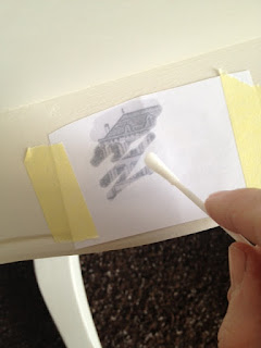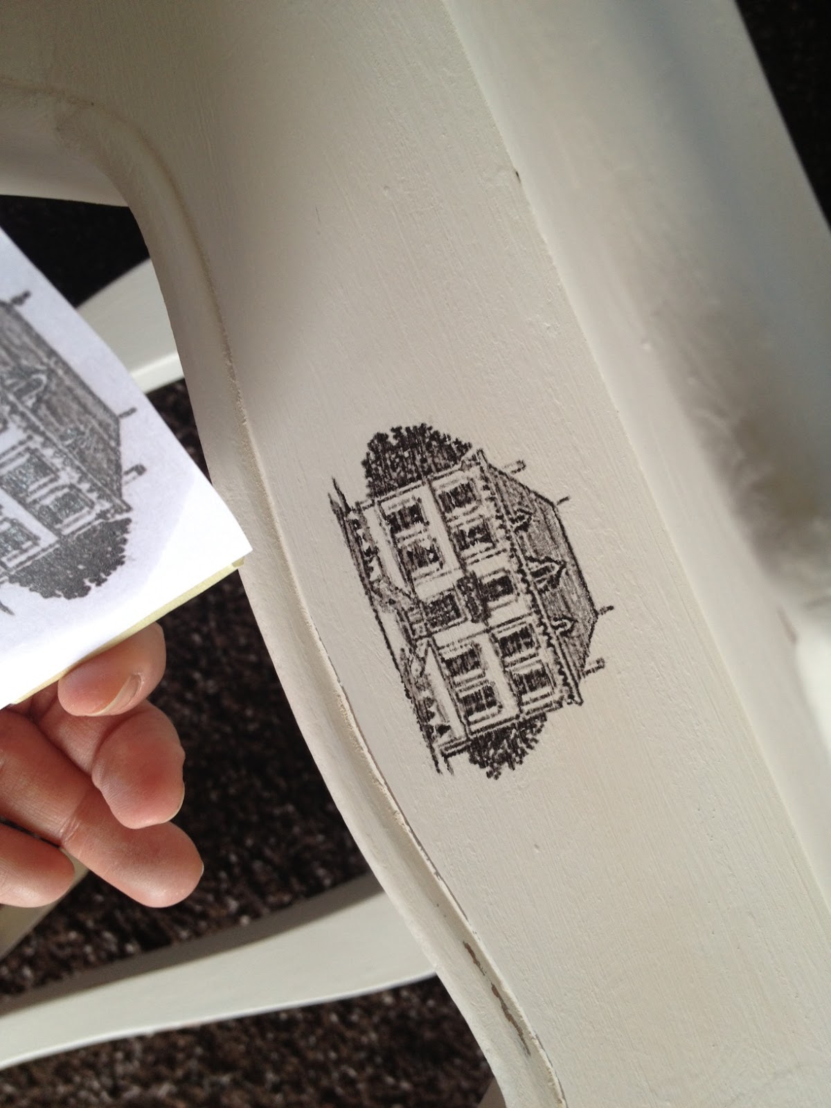 A fiók előlapjának a színe adott volt, a belsejét viszont sötétre szerettem volna festeni. Azonban az oldala már más tészta! Ezek a régi fiókok még nem sínen csusszannak be a szekrénytestbe, hanem bizony csak egy fadobozkát képzeljünk el, amit egy neki szánt helyre be kell tolni. Azonban ha ez a dobozka a külső oldalon is festékréteget kap, félő, hogy majd szorulni fog a későbbiekben a mégoly kismértékű térfogatnövekedés miatt is akár, és hát az sem szép látvány, amikor a fiók oldaláról bizony a használatból eredendő festéklekopottság látható. Na erre jött a mintás fiókoldal ötlet, amit egy stencil és egy darabka szivacs segítségével valósítottam meg. A régi csapolásokat pedig kicsi ecsettel festettem, hogy direkt kihangsúlyozzam. Száradás után pedig az egészet jó alaposan visszacsiszoltam, így a minta pont azt a régies külsőt kapta meg amilyennek látni szerettem volna.