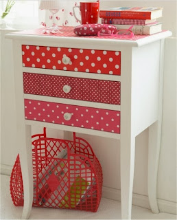 De ha nem tudsz választani, hogy melyik pöttyös minta is lenne az igazi, akkor a fiókok előlapjait vond be öntapadós fóliával vagy textillel és akkor mindet használhatod.