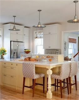 Ha a konyhádat nem szeretnéd túl harsogónak látni, épp elég ha a székeket bújtatod pöttyös kárpitba.
