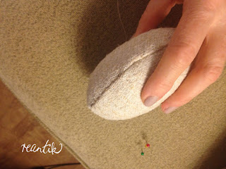 Lehetett volna rögzíteni a darabokat ragasztópisztollyal is, de a friss levelek még száradni fognak, ezáltal picit kisebbek lesznek majd, így inkább a gombostűs módszert választottam, a formába amúgy is könnyedén bele lehet szurkálni ezeket.