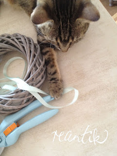 Mivel blogcica teljesen kinullázta azt a szép halványpasztell szalagot, amit eredetileg kiválasztottam, így menet közben változott is az elképzelésem. Készült rá egy natúr-fehér pamutszalag, ami kapott egy kis egyediséget.