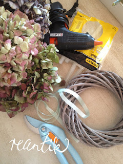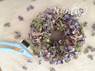 Ez a koszorú egy hatalmas sikerélmény most a számomra, mert eddig sosem sikerült megszárítanom a hortenziákat. Pedig már régóta imádom, és 1-2 éve próbálkozom is vele. (Még Japánban is sikerült virágzásra bírnom a kertben lévő elhanyagolt hatalmas méretű hortenziabokrot.) És itt van, pont olyan mint amilyennek lennie kell, papírosan finom tapintású, nem törik és valami csodaszíne lett.