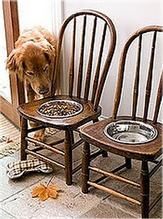 Egy ilyen jópofa kutyatál-tartót készíthetsz a gyerkőc kinőtt kis IKEA fa székecskéjéből is vagy egy kissámliból.