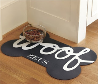 Csont alakú alátét szőnyeg, természetesen névvel ellátva.