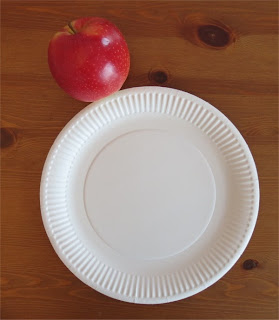 Szóval, vegyél egy papírtányért, hajtsd félbe, a középső részt ragaszd össze, rajzold meg a süni fejét, ollóval vagdosd be a tüskéit és máris viheti az almát :o)