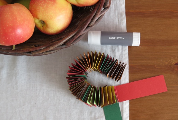 Majd két egyforma hosszúságú, több méteres papírszalagot készítettem a papírcsíkok összeragasztásával.