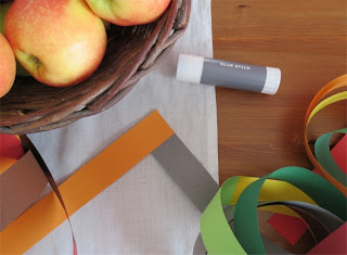 Első lépésként papírszalagokat vágtam a színes papírokból.