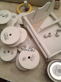 A csupasz fehér túl steril lett volna, így mind a 10 guriga, mindkét oldalára kis pecsétmintákat transzferáltam. A vázszerkezet is kapott mindkét oldalra mindenféle csajos mintát és pecséteket. Amikor készen voltam a macerás részekkel, akkor következett még egy réteg macera, mert még hátra volt a waxolás. Alaposan beborítottam áttetsző waxréteggel a darabokat, majd egy puha ronggyal átdörzsöltem. Szeretem ezt a selymes tapintást, amit végül kapok ezeknél a festékeknél.